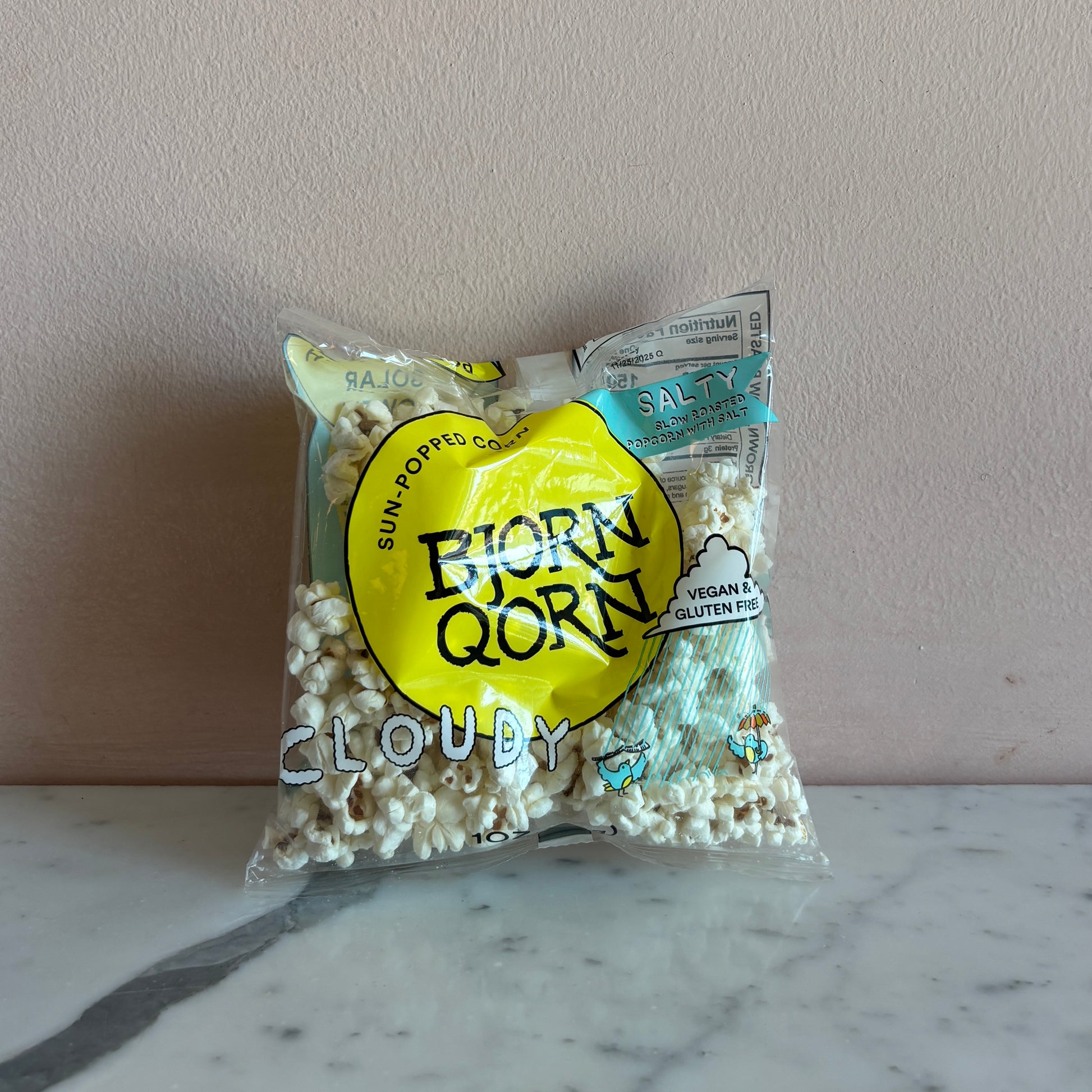 FROM BJORNQORN: Our Cloudy Qorn is slow roasted and just salted. The kernels are dark on the inside and bright white on the outside. They're crunchy and, dare I say, sophisticated. Popcorn lovers will truly appreciate this one.